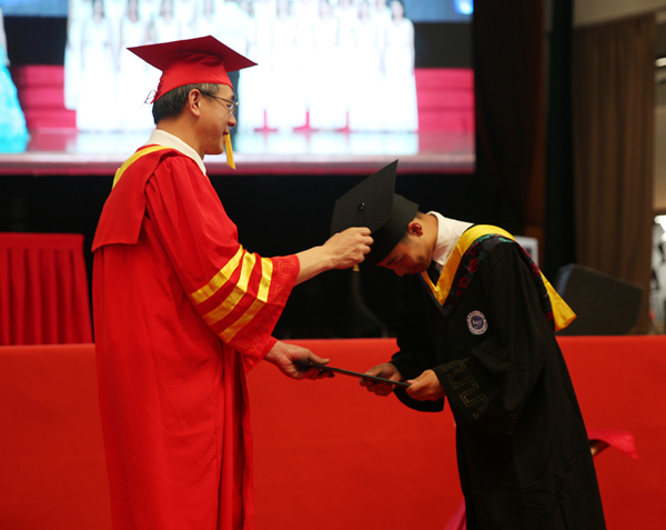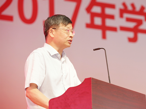 数年努力终有成。学校副校长贺盛瑜宣读准予2017届硕士研究生和普通本科学生毕业及学位授予文件。学校副校长于世祥宣读关于省级、校级优秀硕士、本科毕业生及优秀硕士论文获得者表彰文件。