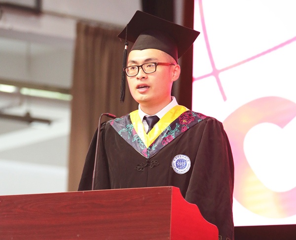 此间曾有我,少年终有梦。大气科学学院2017届硕士毕业生桂珂代表今年毕业的全体研究生向学校、师长、同窗、亲友表示感谢。他细数着那些校园里的点点滴滴,“在成信大这个神奇的校园里,我们蜕掉了身上的稚嫩,学会了成熟和励志,学会了独立与合作,学会了爱与包容”,对未来他信心满满:“我们怀揣理想,为追求学问而来,从成信大走出时,是全新的、自信的!”