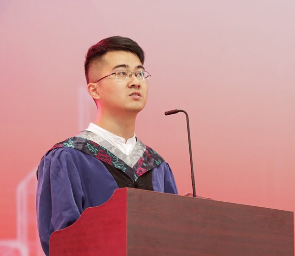 不断奔跑,才能更快接近梦想。通信工程学院的方利鑫作为本科毕业生代表,向母校表达了他的感恩与不舍:“再见,给我们智慧的老师!再见,给我们青春的同学!再见,给我血脉的成信大!”他代表全体本科毕业生表示,要以激情、智慧和汗水为证,牢记母校教诲,不辱“成于大气,信达天下”的校训,用爱心、责任和行动去创造幸福、服务社会、贡献国家,绘就时代赋予成信学子的光荣与梦想!