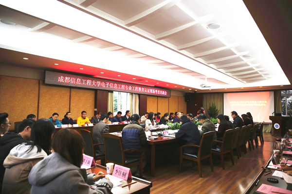 专家组组长陈鹤鸣教授对此次工程教育专业认证现场考查的目的和要求等方面进行了简要说明。电子工程学院院长、电子信息工程专业负责人杨玲从专业概况、培养目标、毕业要求、持续改进、课程体系、师资队伍等方面对专业自评报告进行了补充说明。各位专家结合专业自评报告中内容,就有关问题进行了提问,相关职能部处、学院和专业负责人,以及相关教师针对专家提出的问题进行了解答。