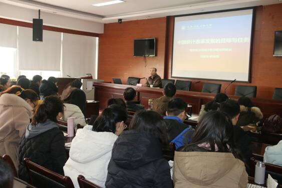 会后,万东华所长在L1213会议室为师生作了题为“中国统计改革发展的目标与任务”的学术讲座,统计学院副院长蒋志华主持讲座,统计学院全体教师、研究生和部分本科生聆听了讲座。万东华重点介绍了我国“三大核算改革推进”“绿色发展指数”“新经济统计”“普查和常规统计调查”“统计数据的挖掘与分析”“如何开发和利用大数据”等六个方面的统计改革发展目标与任务,并就如何切实保障统计数据质量提出了十分有针对性的见解。