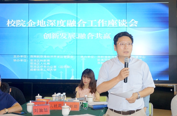 西南航空港经济开发区管委会副主任刘治旭对高校和企业的到来表示热烈的欢迎。他说,贯彻落实成都市委、市政府关于加强校院企地深度融合的指示精神,需要高校和科研院所为企业提供强有力的人才支撑,希望通过本次交流座谈,校企双方可以展开充分沟通交流,解决企业实际需求,进一步推动校院企地深度融合发展。