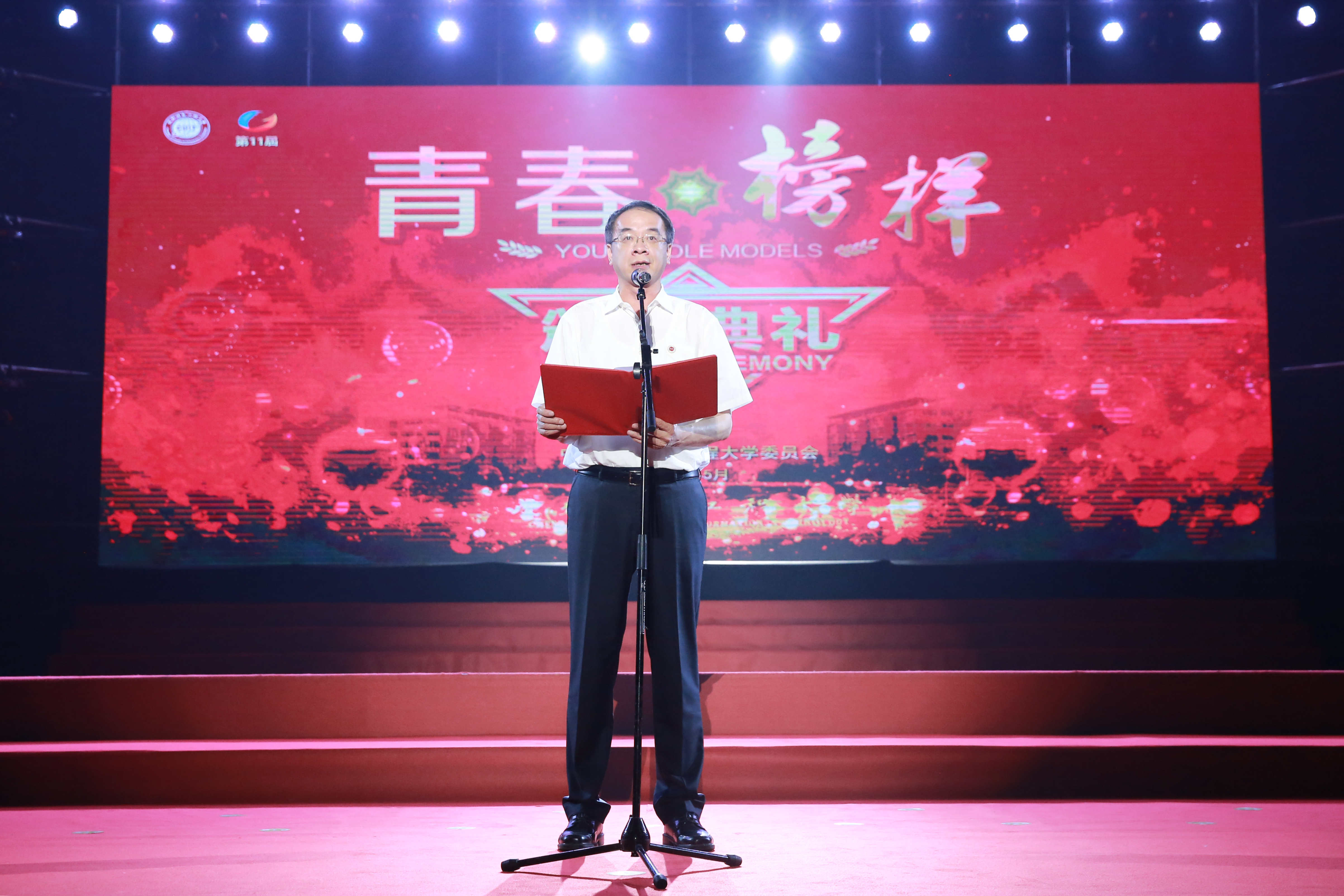 【本网讯】5月25日晚,学校纪念“五四”运动99周年暨2017年度“青春榜样”颁奖典礼在航空港校区体育馆举行。学校党委书记周激流,校长余敏明,副校长于世祥、贺盛瑜、何建新,全体中层干部、辅导员老师、部分师生代表和2017年度青春榜样获得者参加了颁奖典礼。