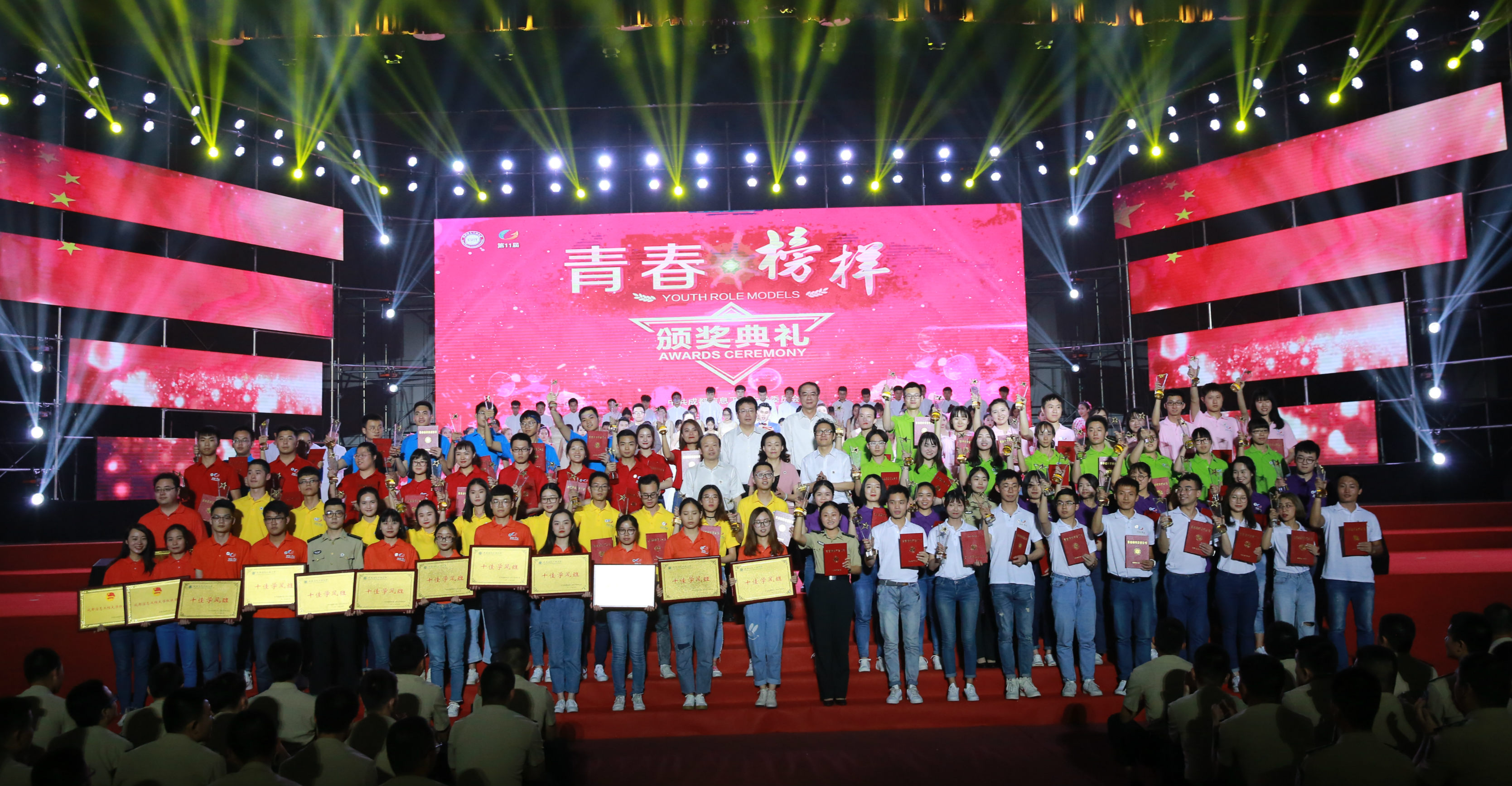 表彰会上,余敏明宣读了学校2017年度“青春榜样”人物的表彰决定。学校党委授予卞成琳等10名同学2017年度“十佳青年学生”荣誉称号,万家硕等10名同学2017年度“十佳青年学生”提名奖称号;授予吕泓柯等10名同学2017年度“十佳班长”荣誉称号,朱钢等12名同学2017年度“十佳班长”提名奖称号;授予陈倩等10名同学2017年度“十佳团支部书记”荣誉称号,魏兰惠等11名同学2017年度“十佳团支部书记”提名奖称号;授予汪洋等10名同学2017年度“学习之星”荣誉称号,吕婷婷等11名同学2017年度“学习之星”提名奖称号;授予李锦涵等10名同学2017年度“自强之星”荣誉称号,王楷等13名同学2017年度“自强之星”提名奖称号;授予贺雪等10名同学2017年度“志愿者之星”荣誉称号,钟玲靖等14名同学2017年度“志愿者之星”提名奖称号;授予王丽都等10个团体(个人)2017年度“双创之星”荣誉称号,授予李柯等4个团体(个人)2017年度“双创之星”提名奖称号;授予资源环境学院2015级环境工程卓越1班等10个班级2017年度“十佳学风班”荣誉称号,授予网络空间安全学院2016级网络工程1班等12个班级2017年度“十佳学风班”提名奖称号。