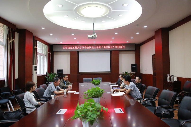 【本网讯】9月17日上午,我国著名信息系统领域专家、中国科学院郑建华院士来学校参观考察,并受聘为我校网络空间安全学院名誉院长。学校副校长肖月强、舒红平,网络空间安全学院副院长张仕斌及万国根教授等参加了授聘仪式。授聘仪式由副校长肖月强主持,人事处、网络空间安全学院部分教师代表参加。