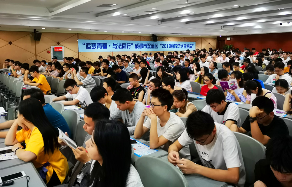 6月6日,在学术报告厅,学校举办了“追梦青春·与法同行”——成都市双流区“2019年高校法治直通车”宣讲会,200余名学生代表到场聆听。《法治直通车》节目主讲律师和双流区公安分局机场路派出所社区民警为同学们讲解了关于毒品与相关法律法规等知识,并告诫大家珍爱生命,远离毒品。