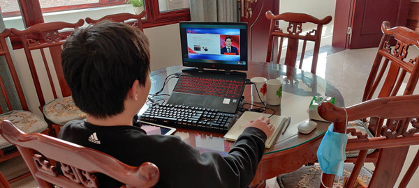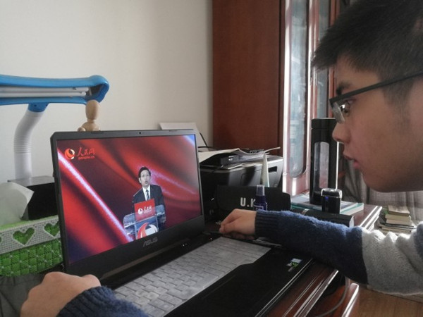 学生们认真收看直播