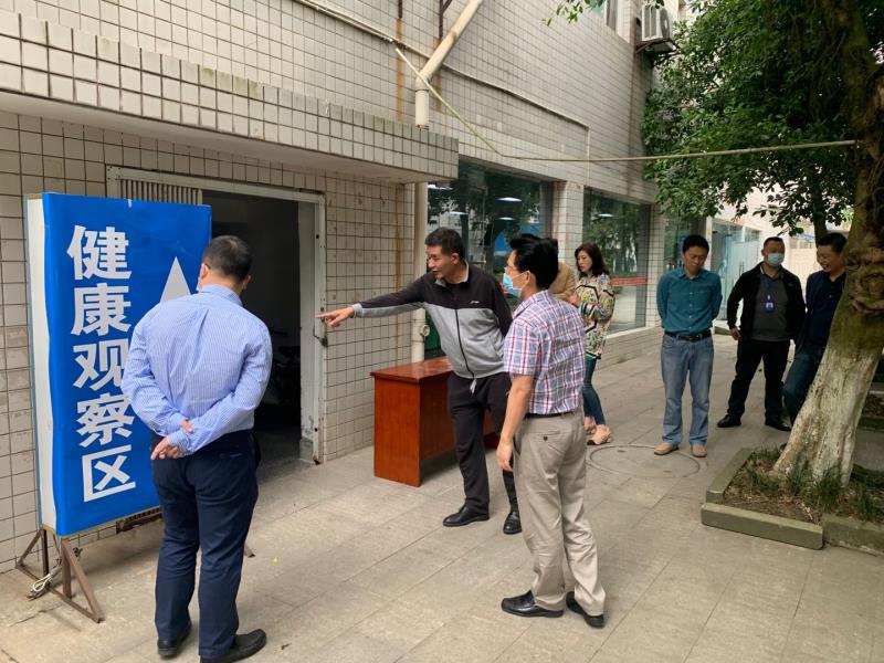 在学校发热临时处置室,校领导一行询问了卫生消毒用品的储备情况及相关应急程序,并叮嘱医务人员一定要做好自身防护,绷紧每根弦,做好同学们返校复课后的疫情防控。