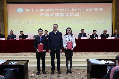【本网讯】11月19日上午,经过两天激烈角逐,第十五届全国气象行业职业技能竞赛暨第四届全国气象行业县级综合气象业务职业技能竞赛在我校落下帷幕。中国气象局副局长于新文、中国农林水利气象工会全国委员会主席蔡毅德、中国气象局综合观测司副司长裴翀、四川省气象局党组书记彭广、我校校长余敏明等出席闭幕式。闭幕式由中国气象局综合观测司副司长田浩主持。