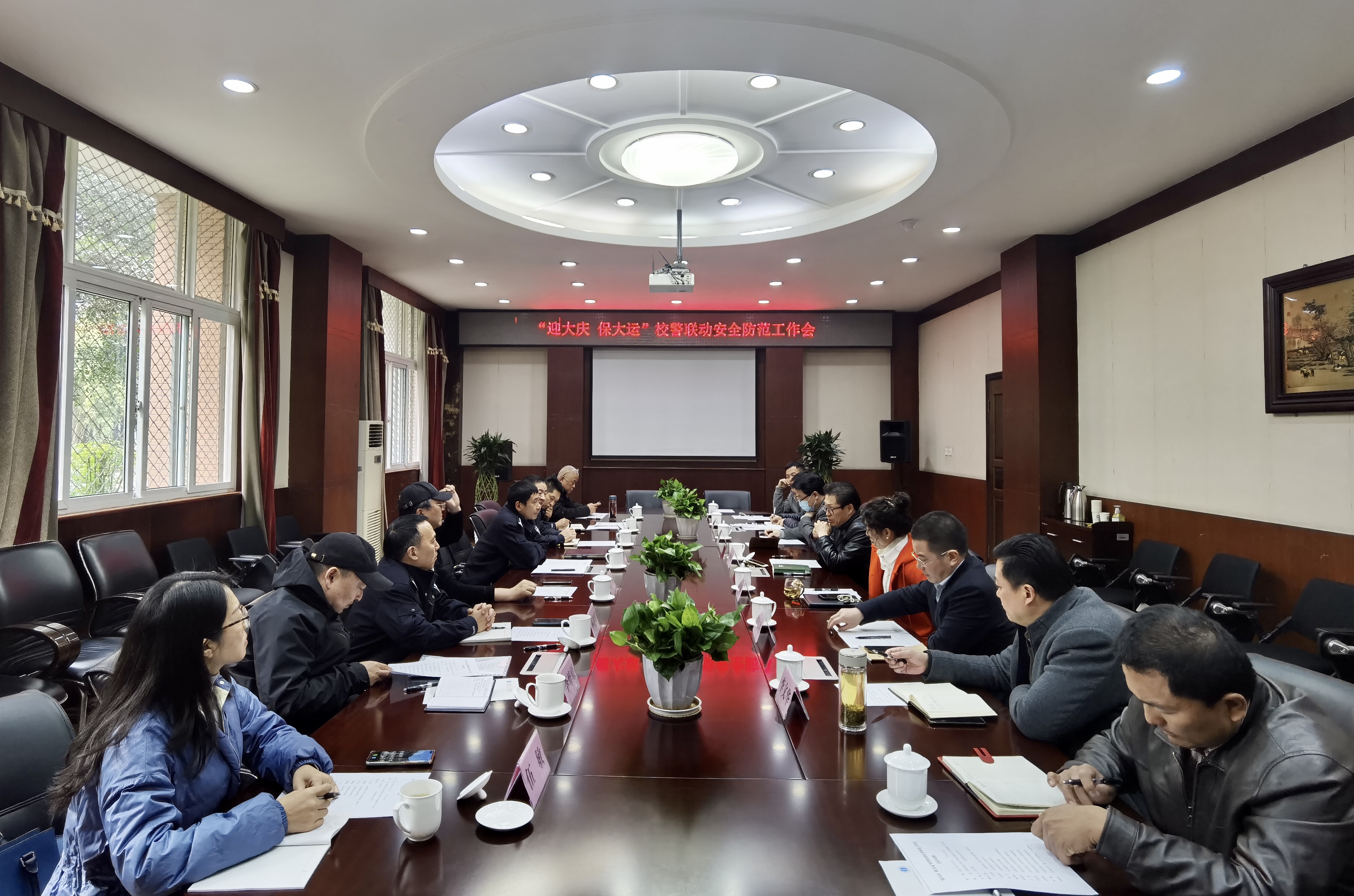 【本网讯】近日,机场路派出所在我校航空港校区第六会议室召开“迎大庆 保大运”校警联动安全防范工作会。学校党委常委、副校长于世祥,党委学生工作部、党委保卫部、信息中心,西南民族大学党委学生工作部、党委保卫部主要负责人参加会议。会议由机场路派出所所长沈卫国主持。