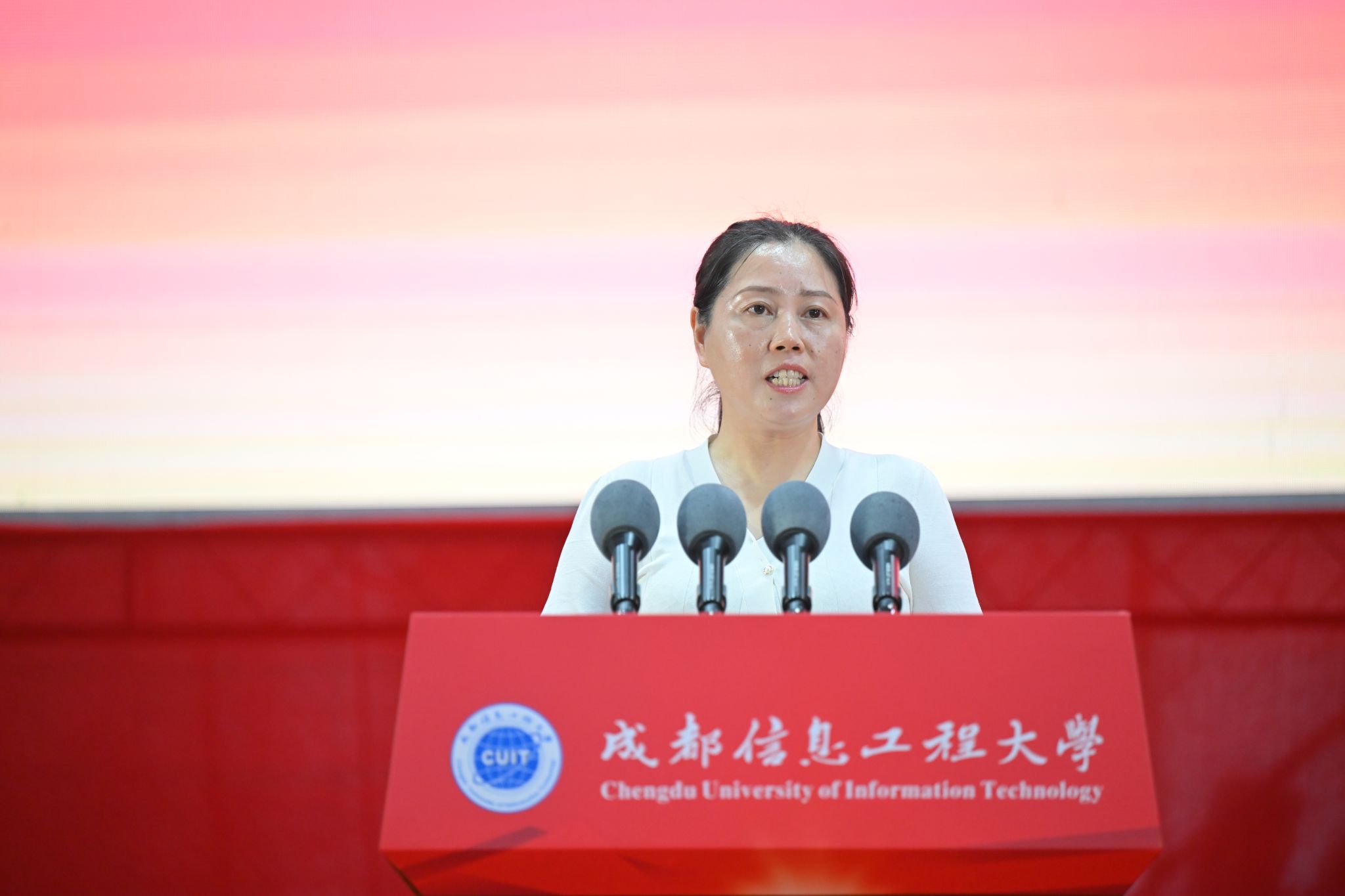 网络空间安全学院毕业生杨冰玉同学的母亲李晓艳女士代表毕业生家长发表祝福感言。她对学校和老师们潜心育人、悉心教诲学生致以最崇高的敬意和感谢,并热烈祝贺毕业生同学们踏上新征程。她勉励毕业生们,要心系祖国、志存高远、脚踏实地,在党和人民需要的时候挺膺担当,在奋斗中创造精彩人生,用青春的激情奏响“清澈的爱,只为中国”的时代强音。