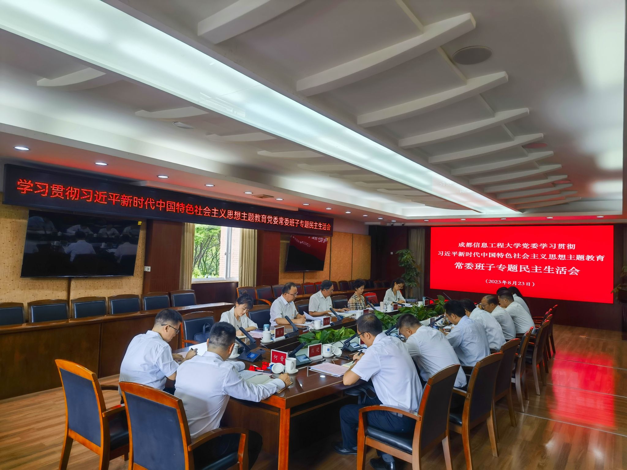 【本网讯】8月23日下午,学校党委常委班子在行政楼第七会议室召开学习贯彻习近平新时代中国特色社会主义思想主题教育专题民主生活会。会议聚集主题教育“学思想、强党性、重实践、建新功”的总要求,紧扣工作实际,深入对照检查,查找问题不足,深剖思想根源,严肃认真开展批评和自我批评。省委主题教育第二十一巡回指导组组长王海滨、副组长苟小兰,及指导组全体成员到会指导。学校党委书记周激流主持会议。