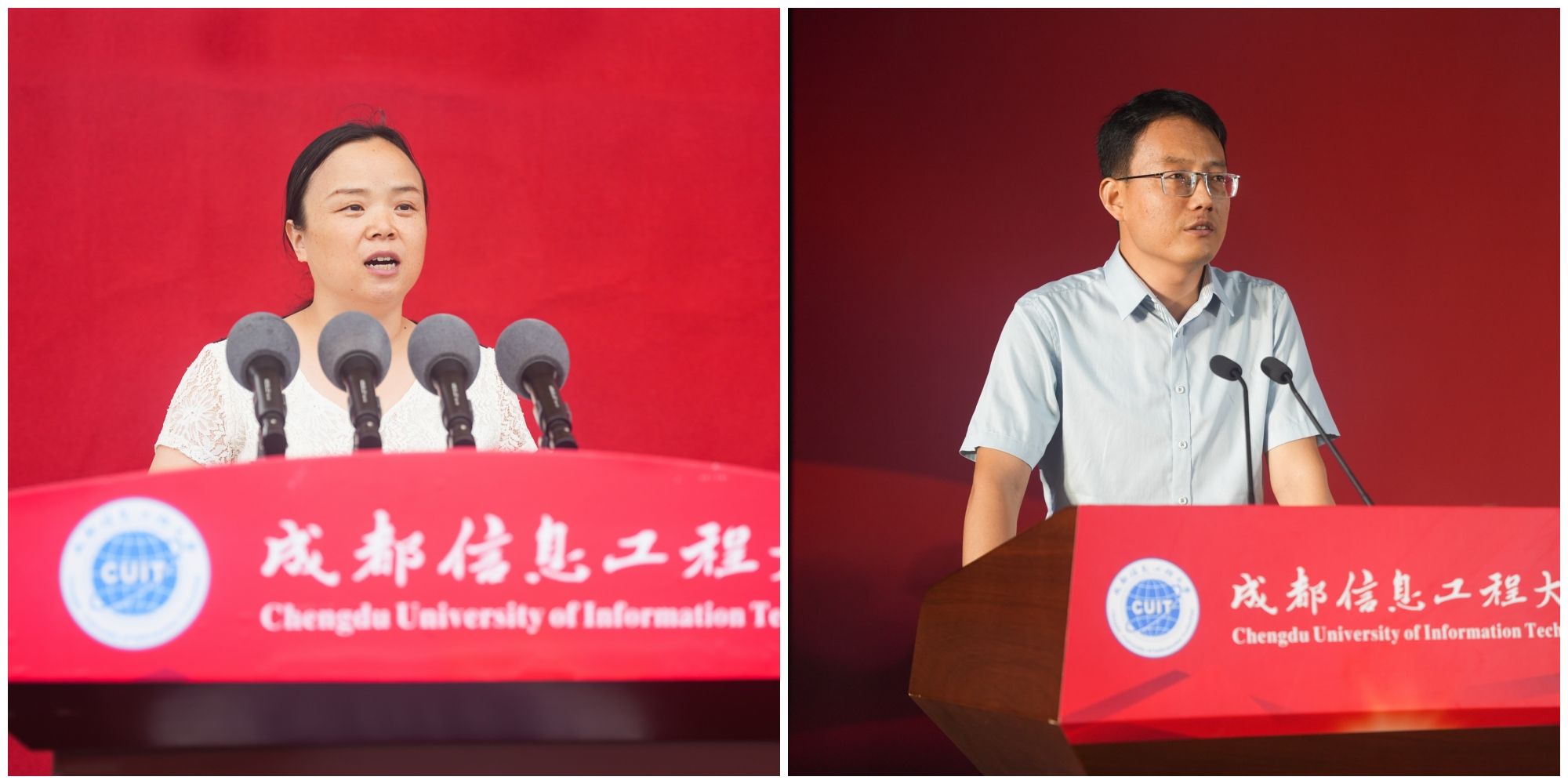 四川省“十佳”优秀青年气象科技工作者、“四川省优秀教师”称号获得者,电子工程学院博士、杨玲教授作为教师代表发言。她深情回顾了在学校和良师的悉心培育下,逐步成长奋斗为教学名师和科研骨干的精彩历程。她希望,同学们善用大学提供的学习资源,坚持不懈地努力学习,培养健康的心智体魄,锤炼良好的团队协作能力。她鼓励同学们勇敢面对挑战,追求梦想,度过充实而难忘的大学时光,取得出色的成绩和人生经验。