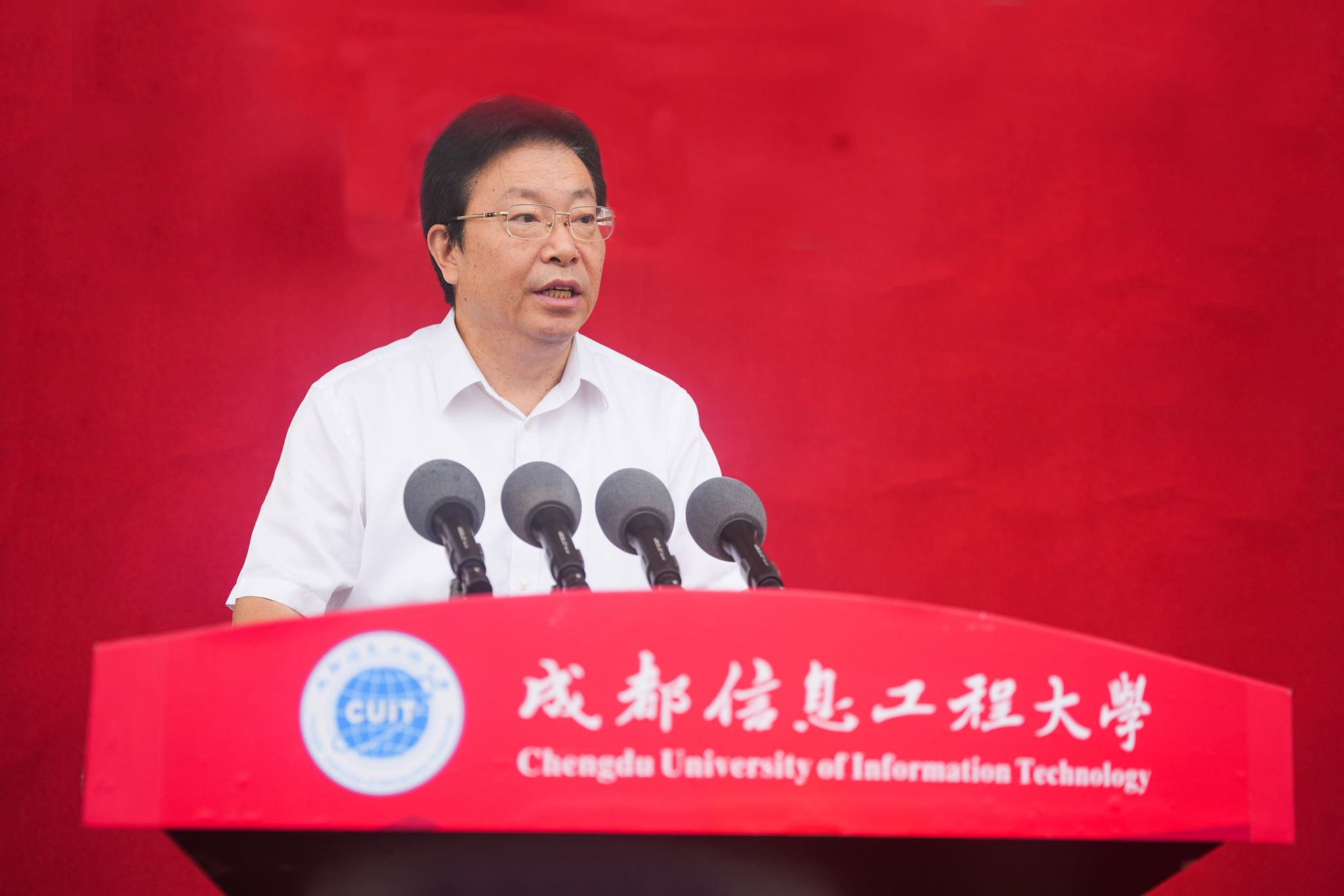 学校校长何建新作了题为《尊师 好学 励志 笃行 做真才实干的成信人》的新生寄语讲话,他希望同学们在美好的校园里,强健体魄、收获知识、磨砺品格、茁壮成长;在大学里找到自己的兴趣和热爱,并坚持下去,把个人梦想融入到国家事业中;发扬成信精神,历炼海纳百川、拼搏进取的大气品质,塑造诚实守信、通达天下的高尚人格,践行“尊师、好学、励志、笃行”的优良学风,争做真才实干的成信人!