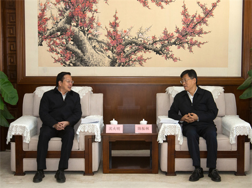 学校党委书记沈火明、校长何建新一行拜会中国气象局局长陈振林