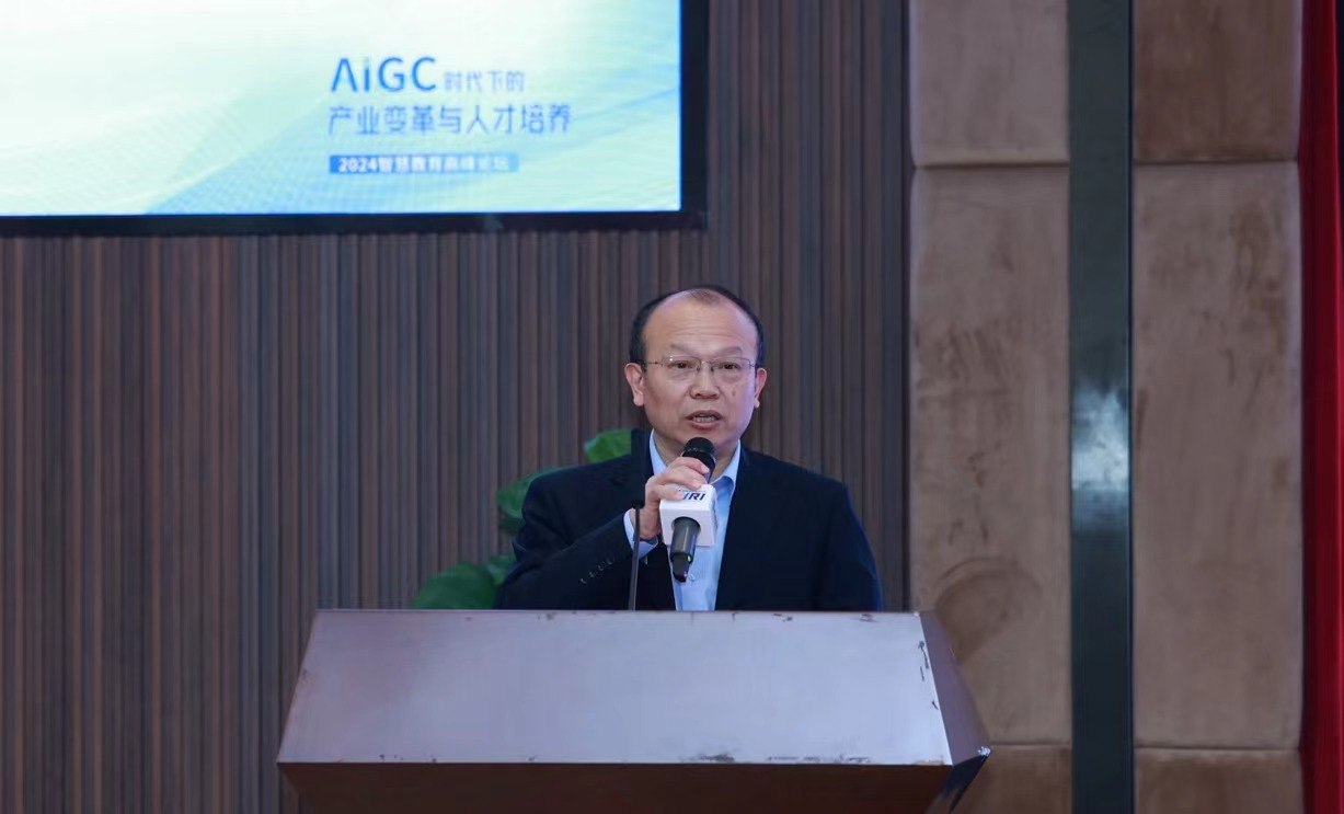 何建新代表学校向各位嘉宾的到来表示热烈欢迎,向关心支持学校改革发展的各级领导和各界朋友表示衷心感谢。他介绍了学校的基本情况,以及在人才培养与科学研究等方面的特色和取得的成就。他表示,AIGC(生成式人工智能)在新质生产力的发展中扮演着重要角色,AIGC技术的高度发展对人才培养提出了更高要求,希望通过此次智慧教育高峰论坛,为AIGC时代下的产业变革和人才培养注入新的动能和活力,为深入实施高等教育数字化战略,推动科产教融合发展,建设教育强国作出更多的贡献。