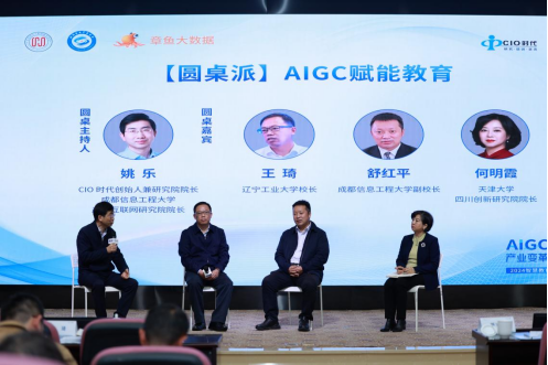 在圆桌派会议环节,我校副校长舒红平、辽宁工业大学原校长王琦、天津大学四川创新研究院院长何明霞等与会专家学者围绕AIGC在教育领域的潜力、AIGC如何赋能教师教学与学生学习、AIGC技术背景下高校如何做好人才培养衔接产业发展,以及AIGC技术在相关行业创新性应用等话题展开深入探讨。