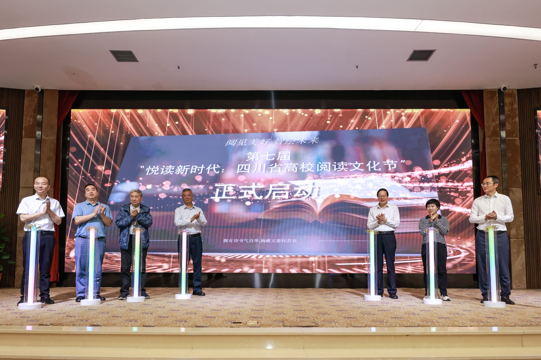 【本网讯】4月19日,为深入学习贯彻党的二十大精神和习近平文化思想,坚持高质量发展理念,以数智技术赋能全民阅读,凝聚高校师生奋进新时代的强大精神力量,为教育强省、文化强省建设不断提供更加充沛的文化滋养,在四川省教育厅的指导下,由四川省普通高等学校图书情报工作指导委员会、四川省图书馆学会高等学校系统委员会主办,云博体育承办的“阅见美好 智绘未来”——第七届“悦读新时代:四川省高校阅读文化节”启动仪式在学校航空港校区盛大举行。韬奋基金会理事长刘伯根,四川省教育厅高教处副处长高波,四川省图书馆党委书记、馆长王龙,四川省社会科学界联合会科普处调研员张晓泓,四川省图书馆学会秘书长赖柯,四川省高等学校图书情报工作指导委员会主任委员兰利琼,特邀专家谭楷,学校党委书记沈火明、副校长朱明出席了会议。
