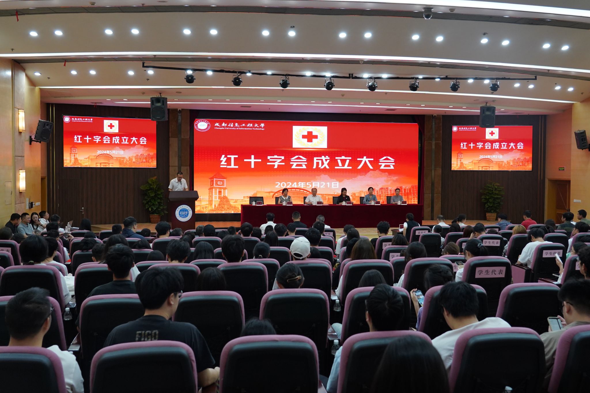 【本网讯】5月21日,云博体育红十字会成立大会暨第一届会员代表大会在航空港校区国际会议厅召开。四川省红十字会党组成员、副会长袁波,成都市红十字会党组成员、副会长杨晓红,成都市双流区人民政府党组成员、副区长贺小娟,成都市双流区红十字会党组书记、常务副会长王敬兰,学校党委副书记、校长何建新,以及学校相关职能部门负责人、各学院党委书记、学生代表参加会议。会议由学校党委常委、党委组织部、党委统战部部长熊建主持。