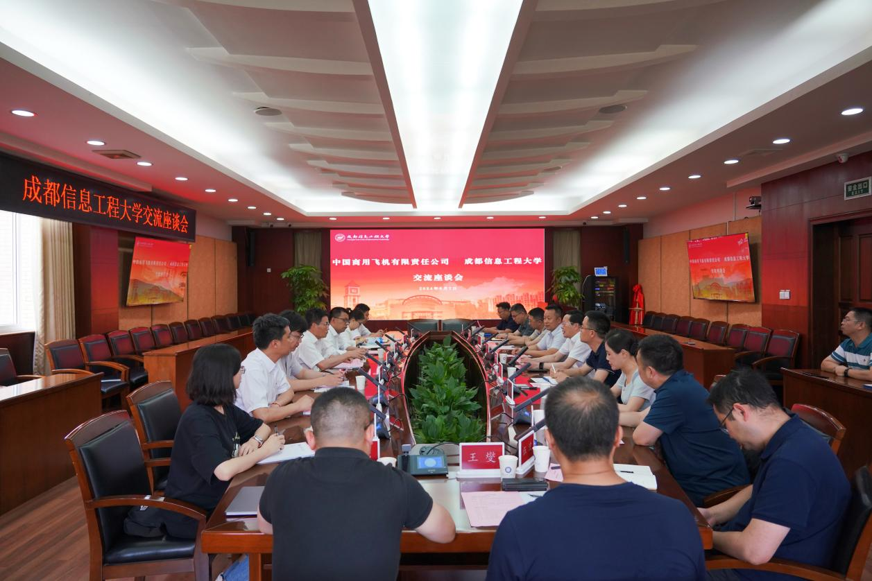座谈会上,大气科学学院、电子工程学院(大气探测学院)、光电工程学院、软件工程学院主要负责人和科研骨干教师分别介绍了在气象雷达、航空安全、人影传感器与催化剂、航空软件、无人机系统等领域的研究情况。中国商飞ARJ21衍生型副总设计师党亚斌、上海飞机设计研究院飞机结构强度工程技术所载荷部部长窦忠谦、民用飞机试飞中心科技与信息化部部长杨春霞、四川公司人力资源部(培训中心)部长叶耒、四川公司人力资源部(培训中心)高级主管郭博、大飞机高原研究中心工程师李宇分别介绍了公司在气象探测、高原气象、航空安全、精细化气象预报、材料结构强度等方面的合作需求。