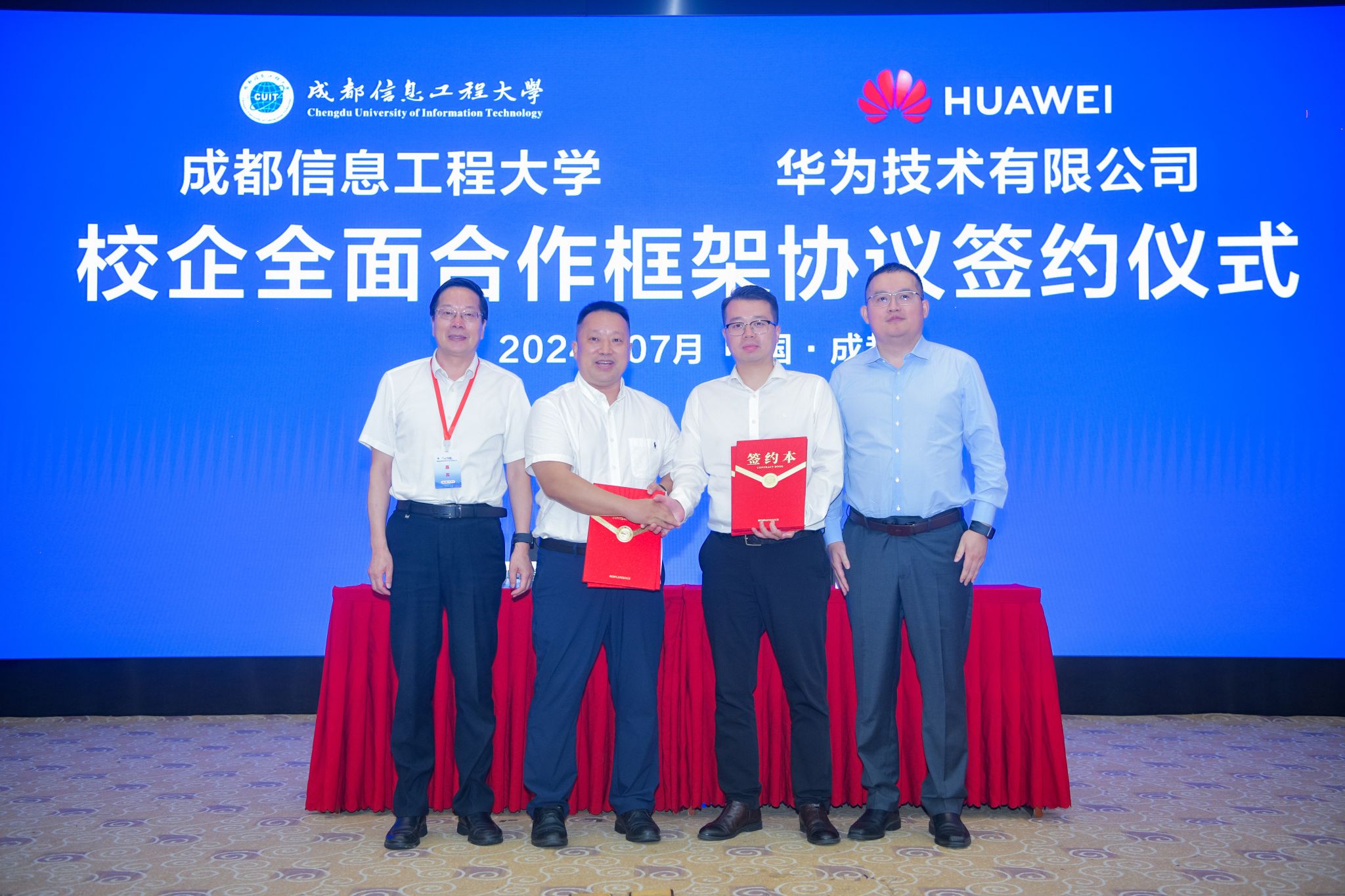 学校副校长舒红平和华为川藏政企教育医疗总经理张志华分别代表双方单位,签署了云博体育——华为技术有限公司校企全面合作框架协议。沈火明、赵祎鑫见证了双方开启深度合作、共创辉煌的里程碑时刻。