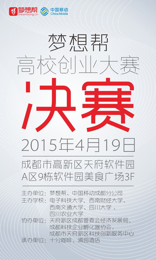 请登陆梦想帮官网(www.dreambang.cn),点击首页“梦想帮高校创业大赛决赛”大图,进入报名界面填写完整信息。