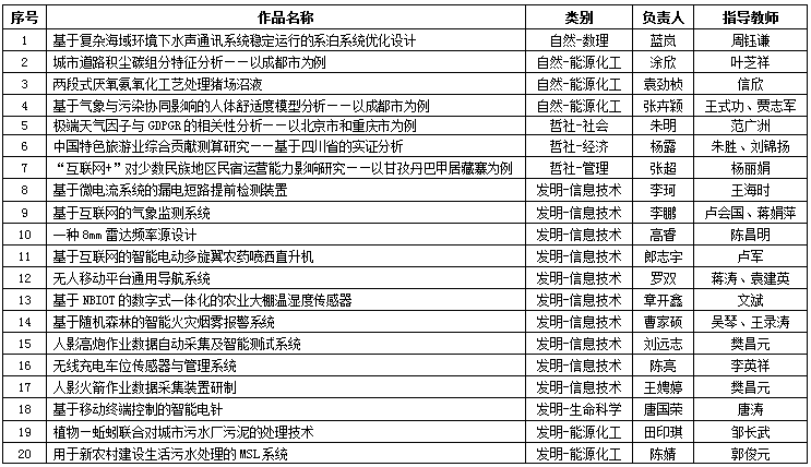 关于参加四川省第十四届“挑战杯”大学生课外学术科技作品竞赛的结果公告