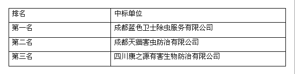 7月17日,云博体育灭鼠虫害服务项目比选小组召开比选会议。根据服务设计方案和服务价格的比选,经评审,中标单位情况: