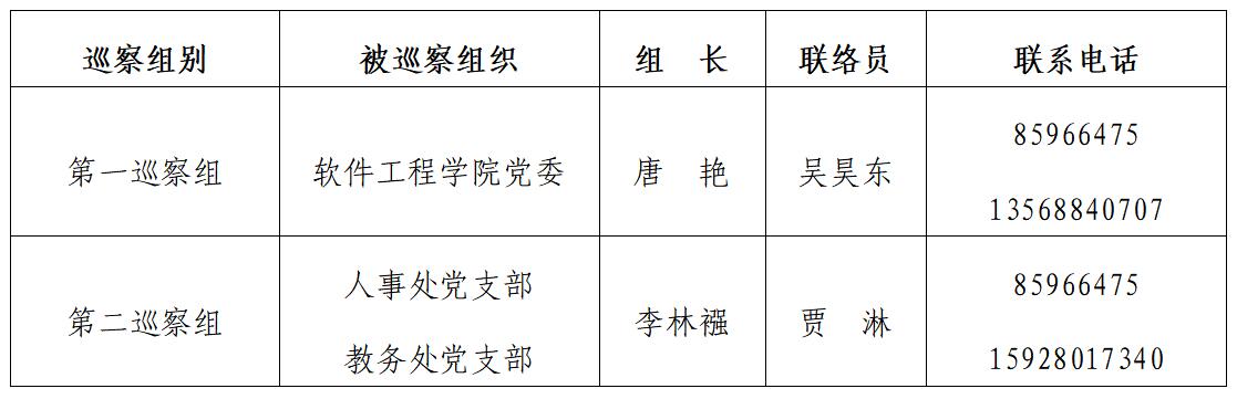 根据《中共云博体育委员会内部巡察工作实施意见》的规定,按照学校党委巡察工作领导小组的统一部署,学校党委巡察组定于2020年6月10日至6月24日,对软件工程学院党委、人事处党支部、教务处党支部开展校内巡察工作。现将有关事宜公告如下: