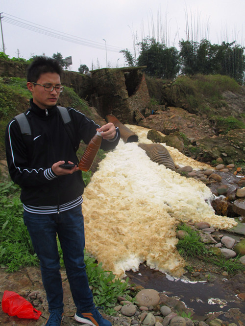本次“蓝天绿水”环保行动,是在资源环境学院的技术指导、民间环保组织成都市锦江区绿氧生态环境保护中心(以下简称:绿氧)资金支持下开展的。11月29日、30日,黄建豪同学两天时间内对宜宾市兰溪区罗龙工业园、自贡市张家坝工业区、内江市西南再生资源产业基地三处工业园区进行实地走访调查行动,发现各自不同程度的环境问题。发现问题后,已经积极联系当地环保部门,并得到马上进行处理的回复。