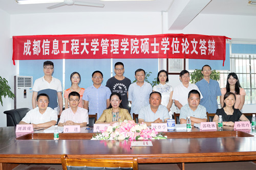 【本网讯】6月12日,管理学院“2015届硕士研究生学位论文答辩”在气象灾害预测预警与应急管理研究中心顺利举行。2015届管理科学与工程以及2012级农业科技组织与服务在职研究生共5名硕士研究生参加了答辩,2013、2014级硕士研究生与会参加了答辩会。答辩会主席由管理学院黄萍教授担任,答辩委员会由我校管理学院、物流学院、科技处,四川大学等单位的专家教授组成。