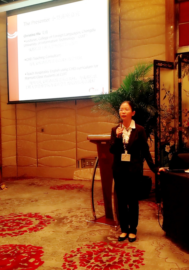 我校教师吴倩被聘为万豪基金会万礼豪程项目教学顾问,参与了万礼豪程酒店情景英语教材的编写工作。在会上,她做了“如何活用万礼豪程酒店情景英语教材”的专题报告,帮助参会老师更有效的将万礼豪程酒店情景英语教材投入课堂教学。