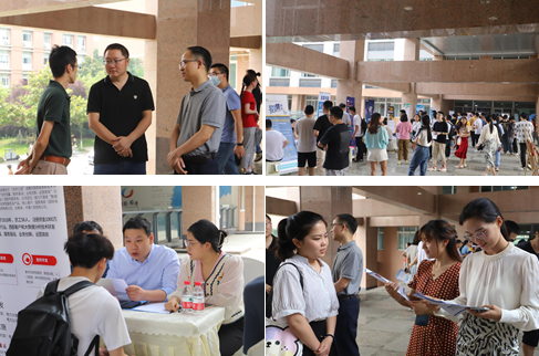 【本网讯】为贯彻落实党中央“稳就业”“保就业”决策部署,拓展毕业生就业渠道,促进毕业生就业,6月1日下午,软件工程学院和该院校友会联合成都信达智胜科技有限公司、华航高科(北京)技术有限公司、成都正扬博创电子技术有限公司、成都淞幸科技有限责任公司、成都菁蓉联创科技有限公司等19家企业(含校友企业),在学校航空港校区举办专场招聘会。学校招生就业处、软件工程学院相关领导以及毕业班辅导员到场与用人单位代表进行现场交流,为毕业生进行就业指导,鼓励同学们增强信心,接受挑战。