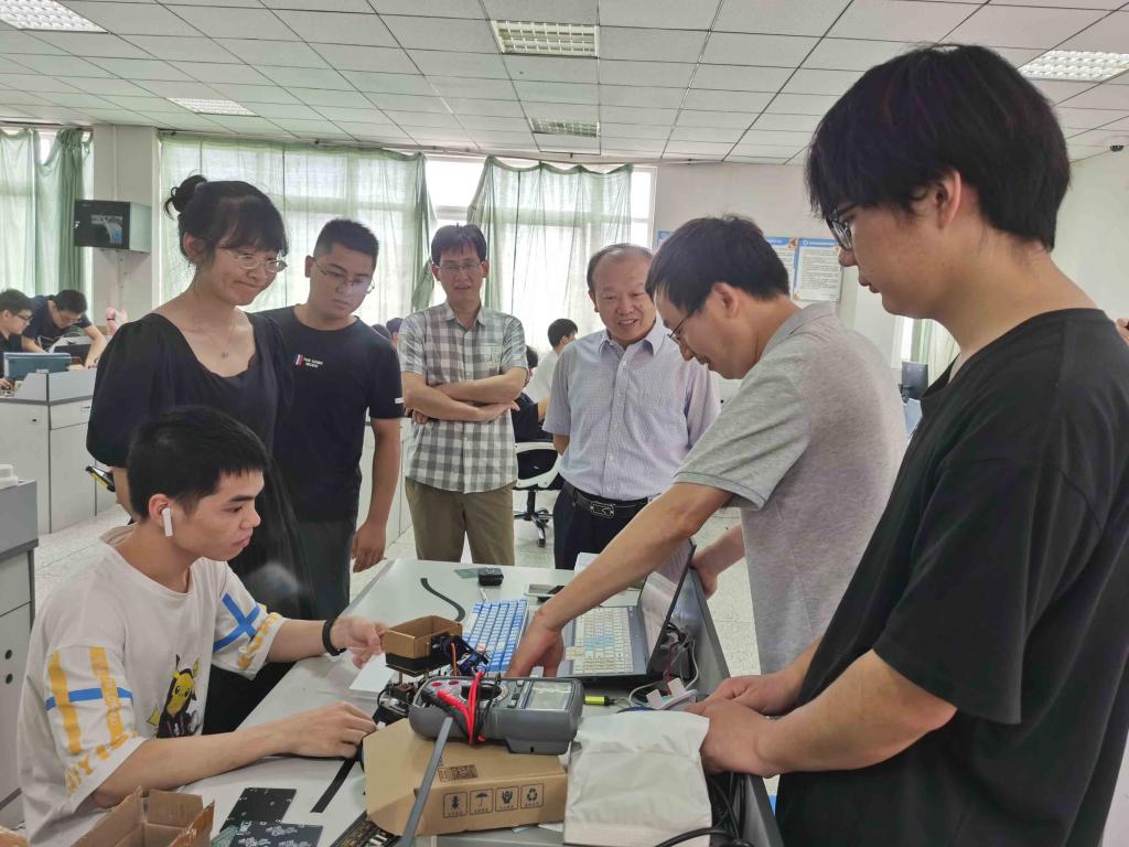 何建新一行来到工程实践中心,详细询问了参加四川省电子设计竞赛的集训备赛情况,和竞赛指导教师进行了深入交流,感谢他们牺牲假期时间全身心投入竞赛指导工作。在查看同学们的作品时,何建新从专业角度进行了指导点评,鼓励同学们大胆尝试创新,争取在竞赛中取得优异成绩。
