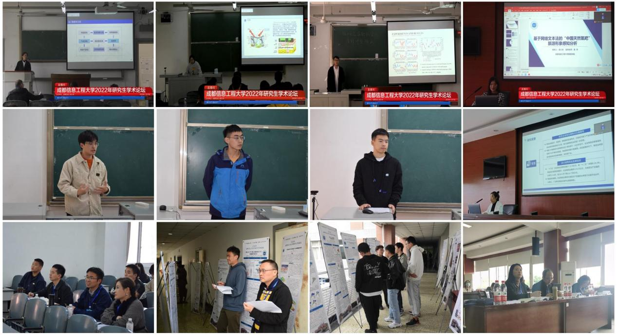 学校在航空港4301、4303、4305、龙泉第二会议室设立了气环数理、电子信息、计软网络、经管文政四个分会场,并在10日下午进行了学术报告口头交流和学术论文墙报交流。在分会场上,各位评审专家认真点评了各位研究生同学的口头汇报,并评阅了同学们的墙报展示。同时,现场的学术汇报和墙报展示也吸引了很多本科生前来观看,长廊中挤满了讨论的同学,现场学术氛围浓烈。此外,各学院组织所有在校研究生以线上直播的方式进行了统一学习和学术交流。