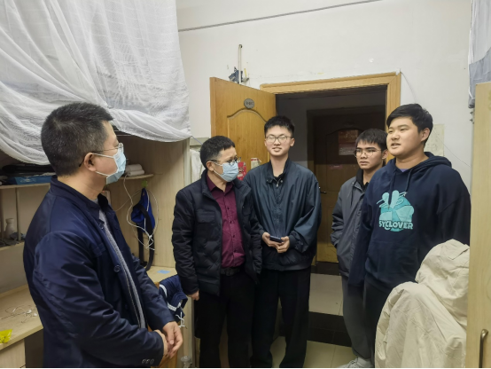 同学们对于校院领导老师们走近学生宿舍表示欢迎,并承诺一定遵守学校管理规定,保持积极乐观的心态,培养健康文明的生活方式,积极复习备考,怀抱梦想又脚踏实地,敢想敢为又善作善成,立志做有理想、敢担当、能吃苦、肯奋斗的新时代好青年。