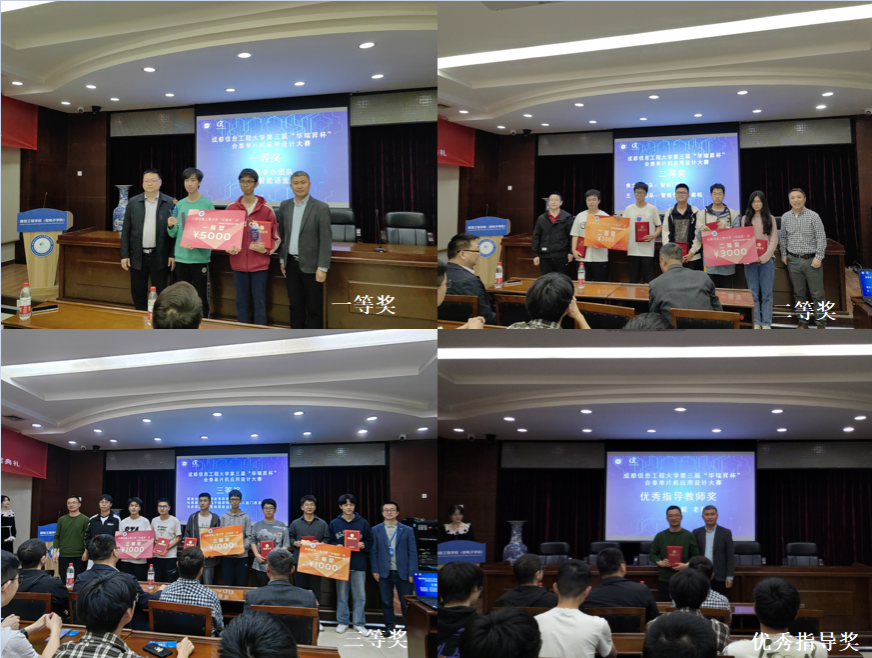 4月22日下午,竞赛颁奖典礼在学校航空港校区行政楼一会议室举行。通信工程学院(微电子学院)院长李英祥教授、合泰半导体(中国)有限公司营销处处长单义强、通信工程学院(微电子学院)蔡炬教授、华瑞昇电子(深圳)有限公司成都分公司总经理徐兵、华瑞昇公司成都分公司工程部经理梁友华等参加了颁奖典礼。