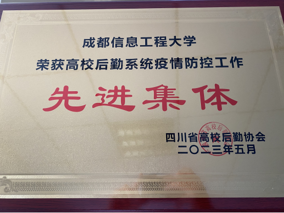 【本网讯】5月19日,四川省高校后勤协会三届四次会员大会在成都召开。会上,表彰了全省高校后勤系统疫情防控先进集体和先进个人。我校被授予“全省高校后勤系统疫情防控先进集体”荣誉称号。我校黄开元、龙泉两位同志被评为“全省高校后勤系统疫情防控先进个人”。