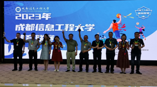 本次学生体育联赛由体育部、学工部、校团委发起,比赛包含了女子篮球、男子篮球、混合排球、足球四个比赛项目,在为期一个半月时间里共计完成近百场激烈角逐,参赛人数达1000余人。最终软件工程学院、大气科学学院、软件工程学院 、电子工程学院四个队分别获得(男、女)篮球、混合排球、足球冠军。党委学生工作部、大气科学学院、软件工程学院、电子工程学院相关负责人分别为获奖运动队颁奖并合影。马洪江为获得体育联赛前三名的学院颁发奖杯并合影。