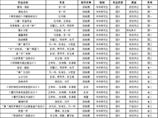 【本网讯】近日,“2023第九届东方设计奖·全国高校创新设计大赛”公布了获奖名单,我校学子共计24份参赛作品获得省级及以上奖项。其中6份作品获得全国决赛一等奖、2份作品获得全国决赛二等奖、5份作品获得全国决赛三等奖;还有1份作品获得省级一等奖、6份作品获得省级二等奖、4份作品获得省级三等奖。