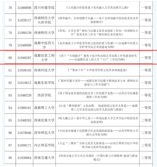 近日,四川省教育厅公布了四川省第十届大学生艺术展演各高校获奖结果,我校报送的高校美育改革创新优秀案例获得一等奖。