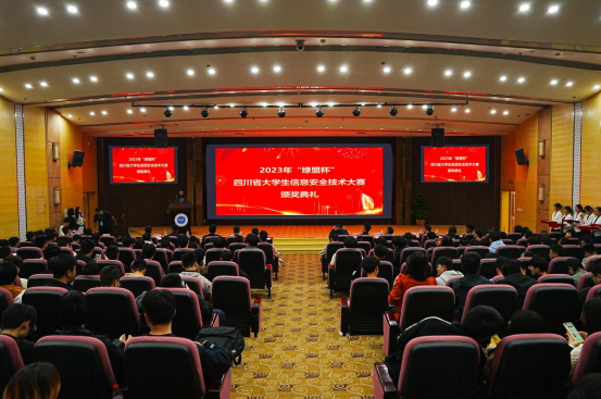 10月22日下午,大赛在我校航空港校区国际会议厅举行颁奖典礼。学校副校长舒红平教授、四川省公安厅反诈中心主任李文德、四川省委网信办网络安全处副处长高沈、四川省网络空间安全协会副秘书长周成龙、绿盟科技集团股份有限公司生态合作部总监寇谏、南京赛宁信息技术有限公司总经理黄玉杰、成都高新策源投资集团有限公司丁郅雅,以及学校相关部门领导和嘉宾参加了本次颁奖典礼。