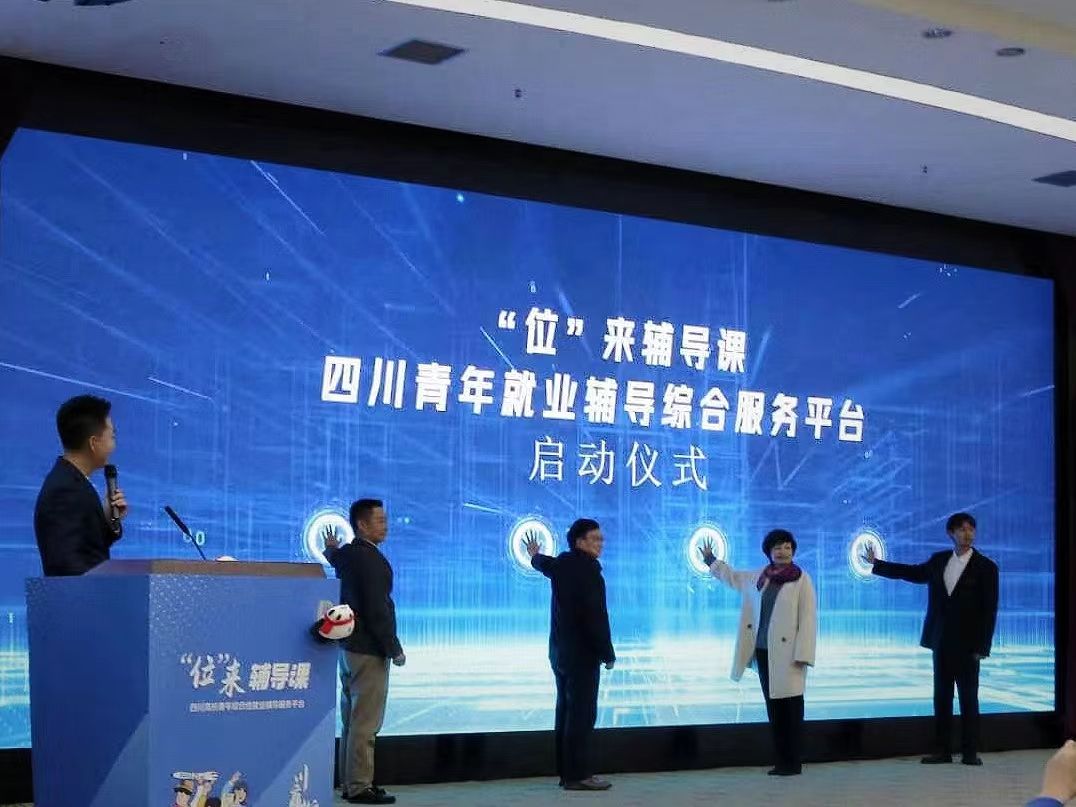活动现场,熊义堋、钟岚、陈权亮以及我校优秀学生代表马栩镯共同启动了“‘位’来辅导课” 四川青年就业辅导综合服务平台。