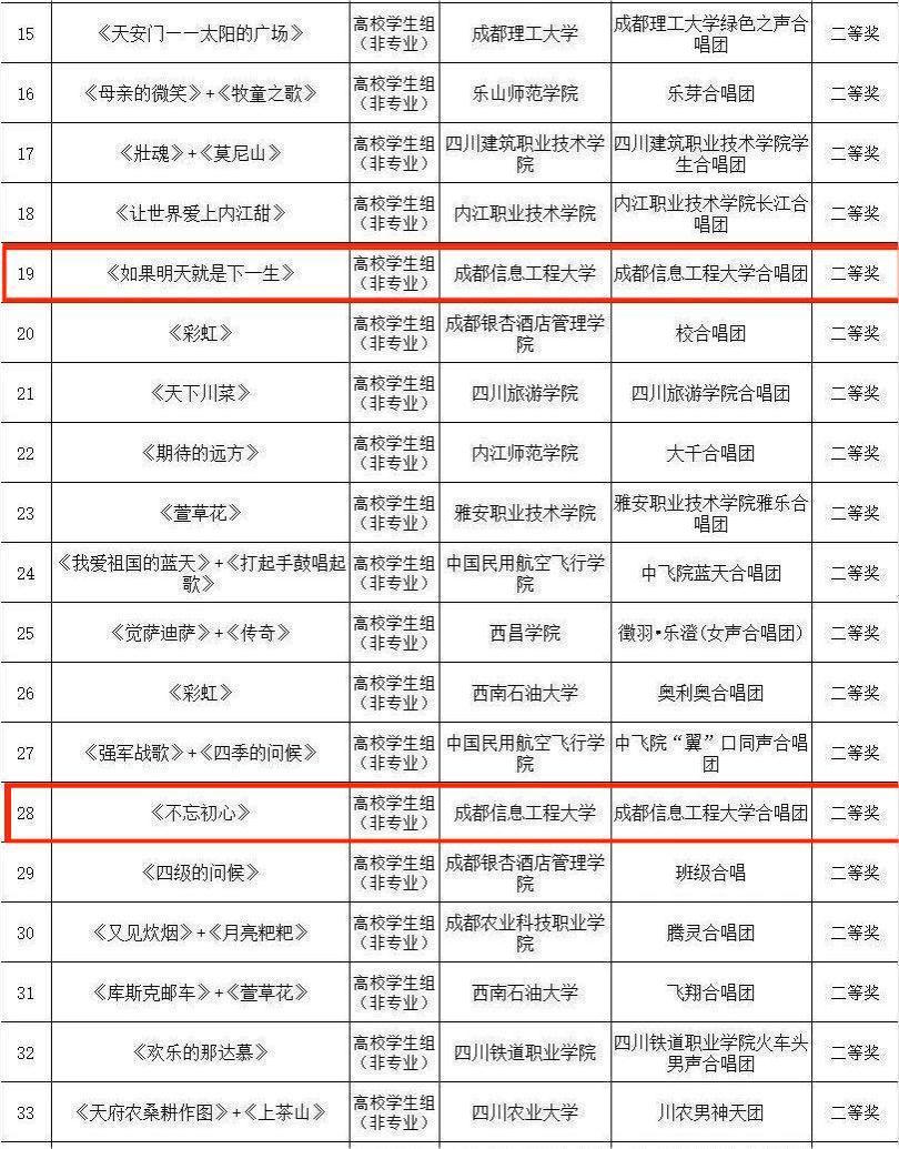 【本网讯】近日,由四川省教育厅主办,四川音乐学院承办的“音润心灵 向美而行”首届西部学校音乐周展演活动在成都城市音乐厅成功举行。我校报送的合唱作品《如果明天就是下一生》《不忘初心》荣获高校学生组(非专业)二等奖;学校获本次活动优秀组织奖。