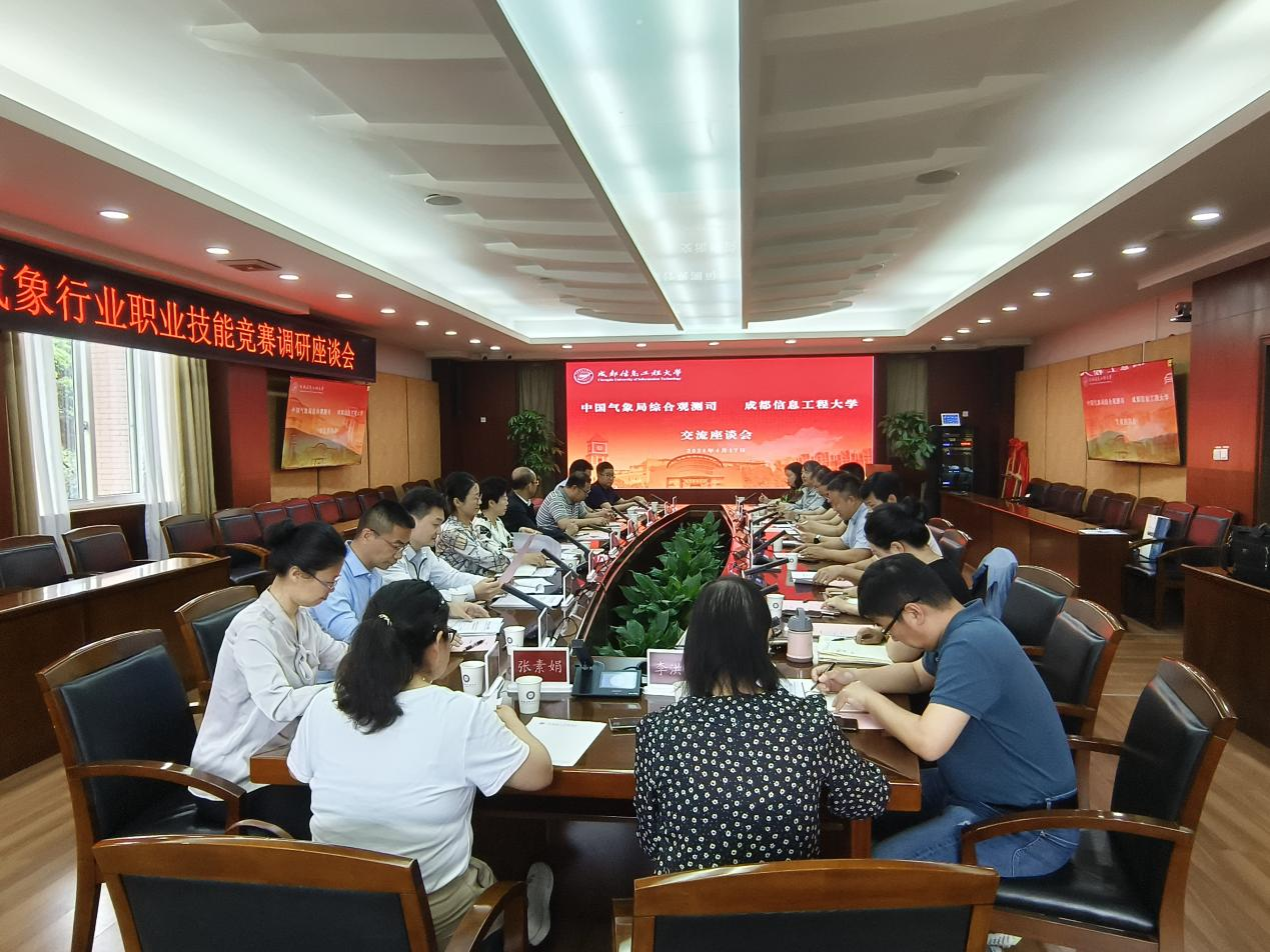 中国气象局综合观测司运行管理处、站网管理处,中国气象局气象探测中心业务处,四川省气象局观测与网络处,学校党政办公室、教务处、科技处(大学科技园管委会办公室)、电子工程学院(大气探测学院)、计算机学院、信息中心的主要负责人和骨干教师参加了交流座谈。