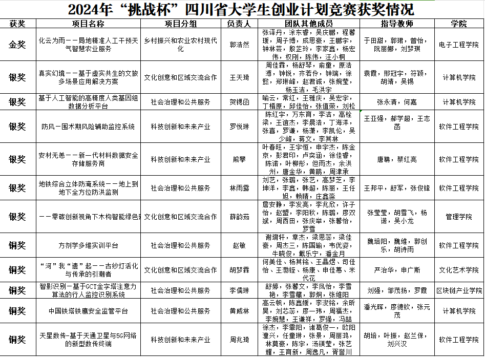 我校在2024年“挑战杯”四川省大学生创业计划竞赛中获奖