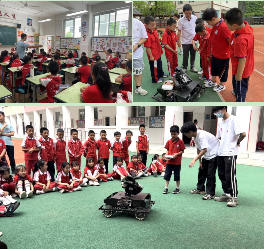 20日下午,师生们来到泸定桥小学,为二年级2班的孩子们带去了一堂生动的科普活动课。课堂上,机器人工程党支部的老师们首先向小朋友们介绍了机器人的基础知识、工作原理以及应用领域,孩子们积极举手回答问题,现场氛围轻松愉快。大学生们通过实物,向小朋友们详细讲解了步兵机器人的设计、制造流程以及涉及的各类物理知识点,并通过现场展示,让孩子们亲自操控让机器人完成各种任务,满足了孩子的好奇心与探索欲,激发和培养青少年从小爱科学、学科学、用科学的意识和兴趣。据悉,这也是自动化学院的师生们今年第二次来到泸定县中小学开展科普活动。