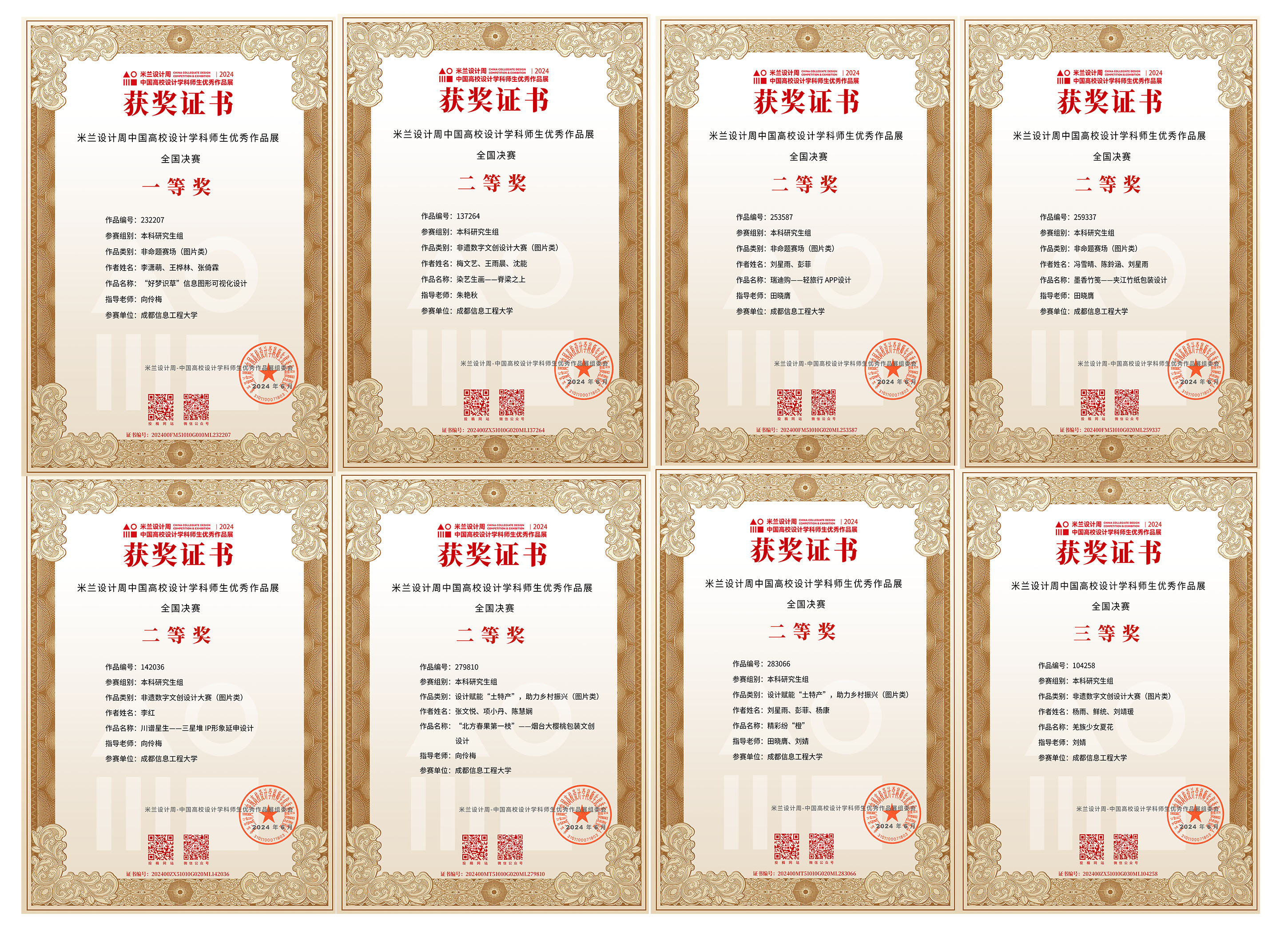【本网讯】近日,第八届“米兰设计周—高校设计学科师生优秀作品展”圆满落下帷幕,我校学子在此次大赛中喜得佳绩,获奖总数再创历史新高,荣获国家级一等奖1项、二等奖6项、三等奖6项;省级一等奖1项、二等奖5项、三等奖33项。