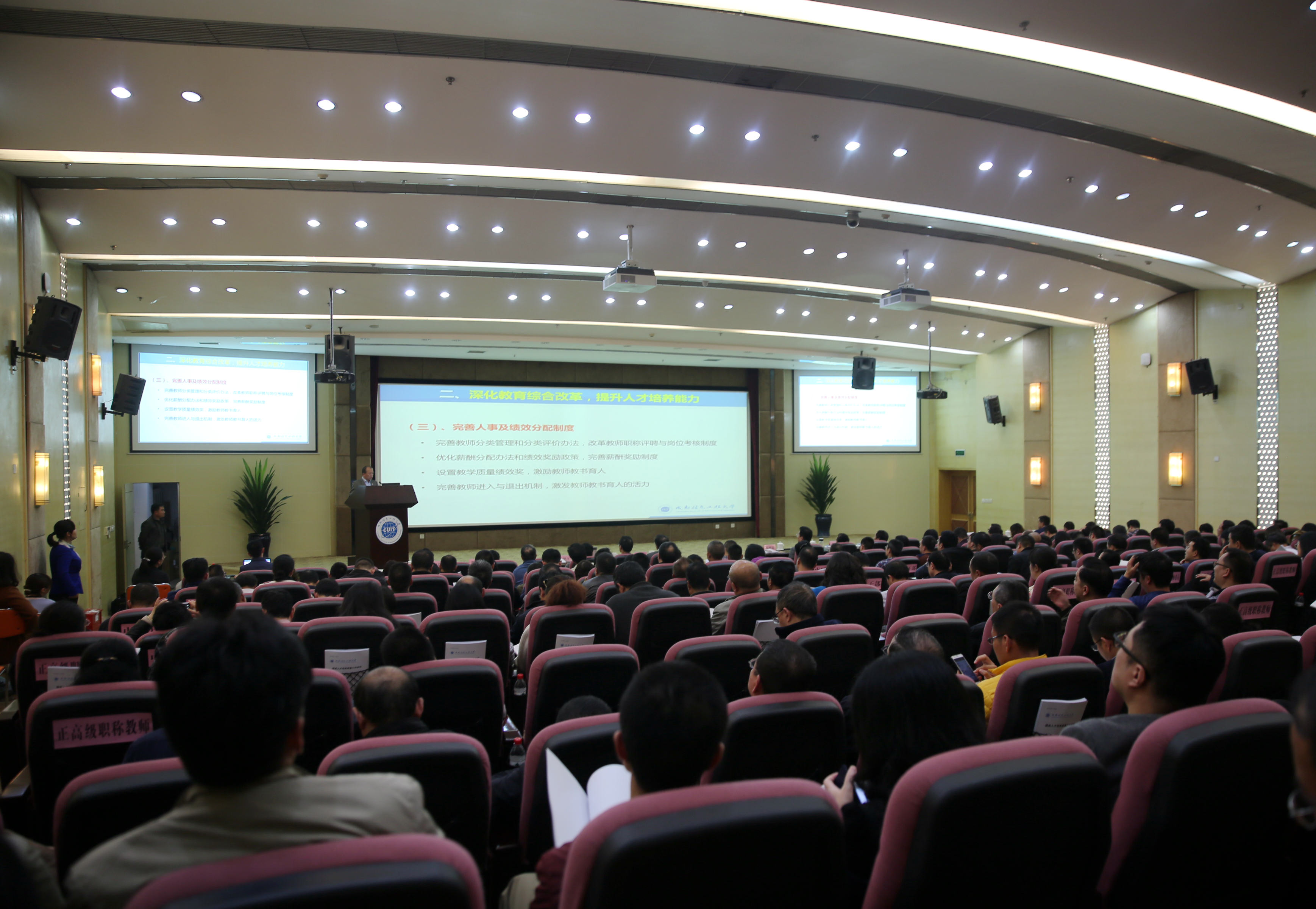 全体校领导,处级以上干部,各级人大代表、政协委员,各民主党派主要负责人,全体正高级职称教师,各教学单位教研室主任参加了会议。
