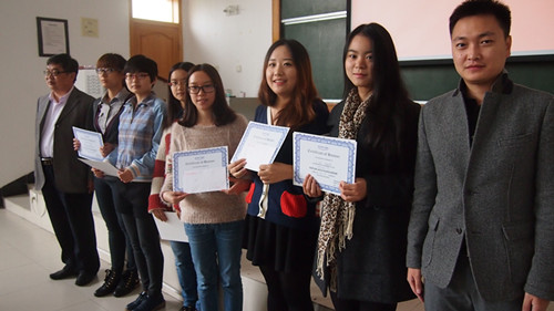 本次表彰大会对来自ACCA2011级、2012级和2013级的8名同学进行了表彰,他们是易雨诗、熊樾、罗竹韵、任丽、蒲亚婧、韦依辰、胡喆和李峥,每位同学在获得全球统考单科第一的荣誉证书的同时,还赢得来自楷博教育和商学院的ACCA优秀学生奖学金。